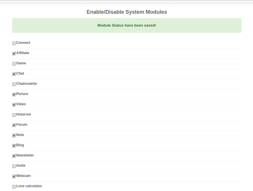 And the same if you want to create only a “Dating Site”, you can now disable through the admin panel the Forum, Note, Blog, Video, Photo Albums and Game modules.